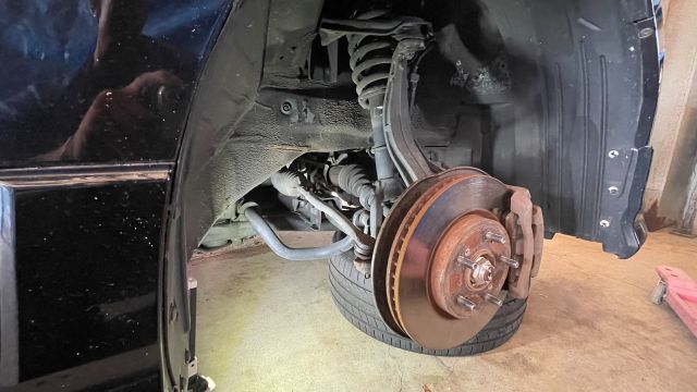 私は作業性を考えて右前のタイヤも外しました。